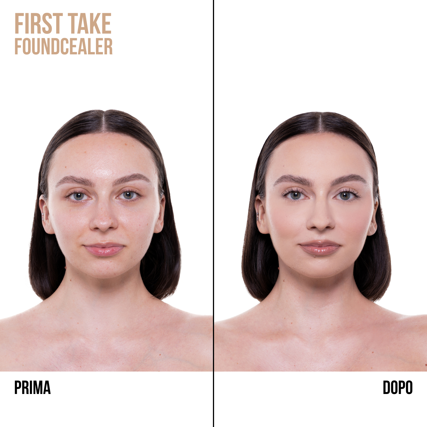 Apply the product directly to the desired area with the special applicator: the precision tip and central opening release just the right amount of product. For a more radiant finish, use with FIRST TAKE FOUNDCEALER: - For a soft, high-coverage finish, apply FIRST TAKE PRIMER as a base, followed by FIRST TAKE FOUNDCEALER,. - For a natural, sheer, yet high-performance finish, mix FIRST TAKE PRIMER with FIRST TAKE FOUNDCEALER. For a flawless make-up look, apply the product with FIRST TAKE BRUSH, which is specifically designed to ensure professional, even application.