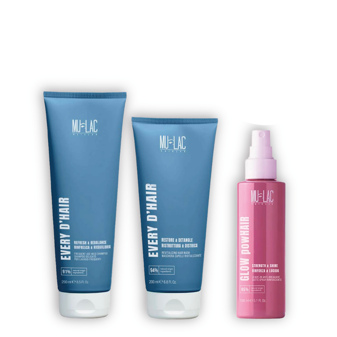 -GLOW POW'HAIR LEAVE IN: un latte spray rinforzante leave-in anti rottura a pH acido, aumenta la resistenza della fibra capillare e previene danni e fenomeni di rottura.