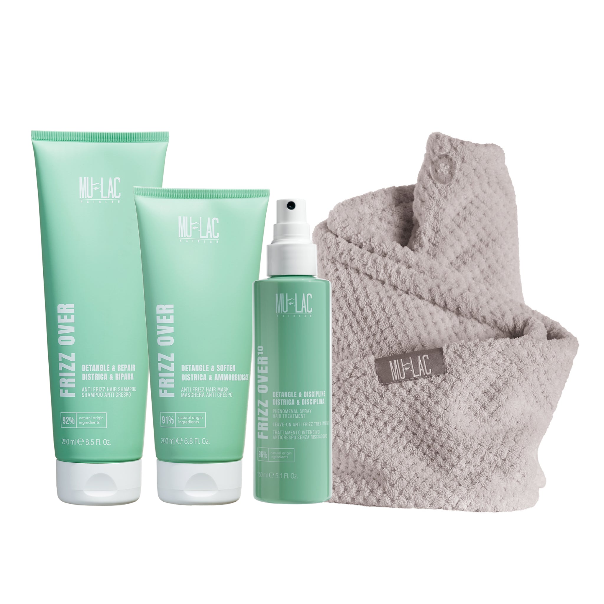 In più, con l’acquisto della routine ricevi in omaggio il TURBANTE GRIGIO in microfibra, ultra morbido e altamente assorbente, perfetto per asciugare i capelli in modo delicato riducendo il rischio di danni e lasciandoli morbidi e senza effetto crespo.